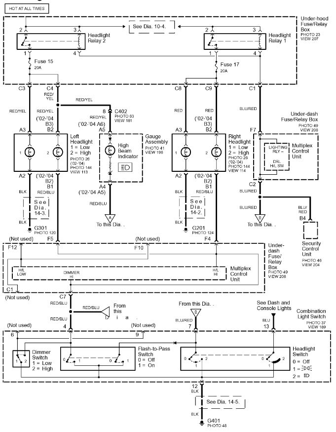 Are these replacement light assemblies that use a single bulb to replace the individual high and low bulbs the stock system used or do you still have a high and a low beam bulb? The OEM system only uses the ground wire for the low beam bulb with the high beam being grounded through the multiplex unit. Do your LED's use 4 wires to connect to the factory system? If so are both the high and low beams dim or is it just the low beam?