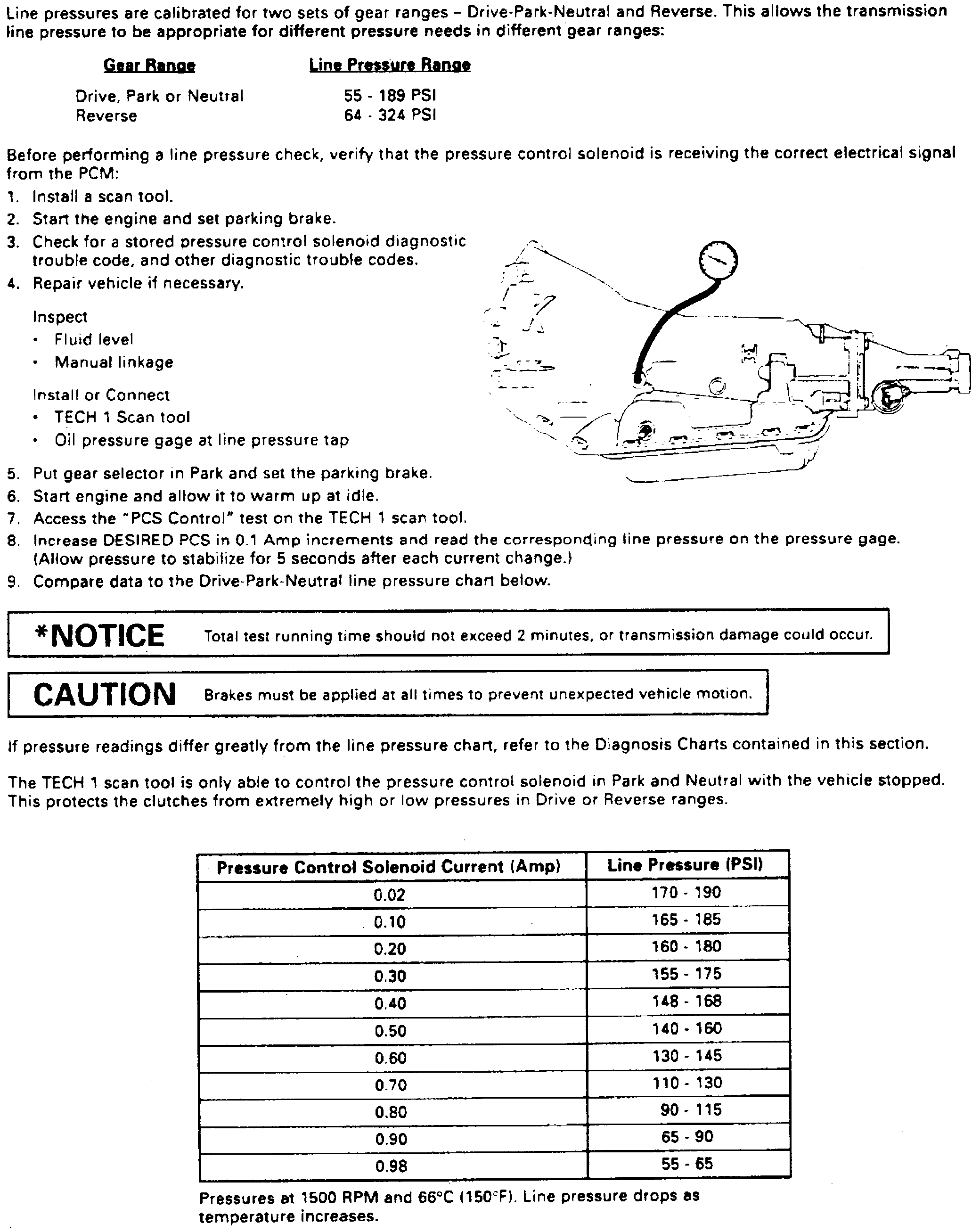 If you have the 4L80E trans, here are the directions for testing line pressure. Please note the time limitation for the actual test listed in the directions. It requires a scanner and these ones for the OBD1 systems are getting harder to find. Picture 5 correlates with these directions.
