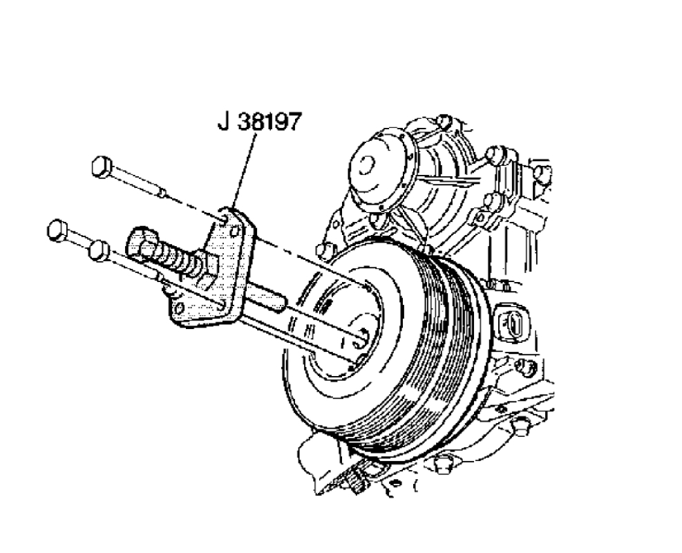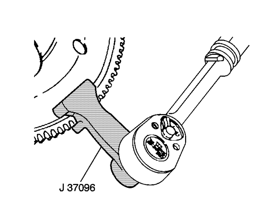 7. Use the J 37096 to secure the flywheel in order to prevent the crankshaft from rotating.
