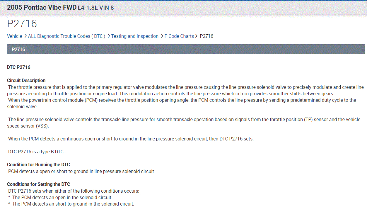 Good evening, the vehicle is experiencing harsh shift while changing gears. I have scanned the vehicle the codes found on it memory is P2716 . How will I know the exact solenoid and what else should be checked for?