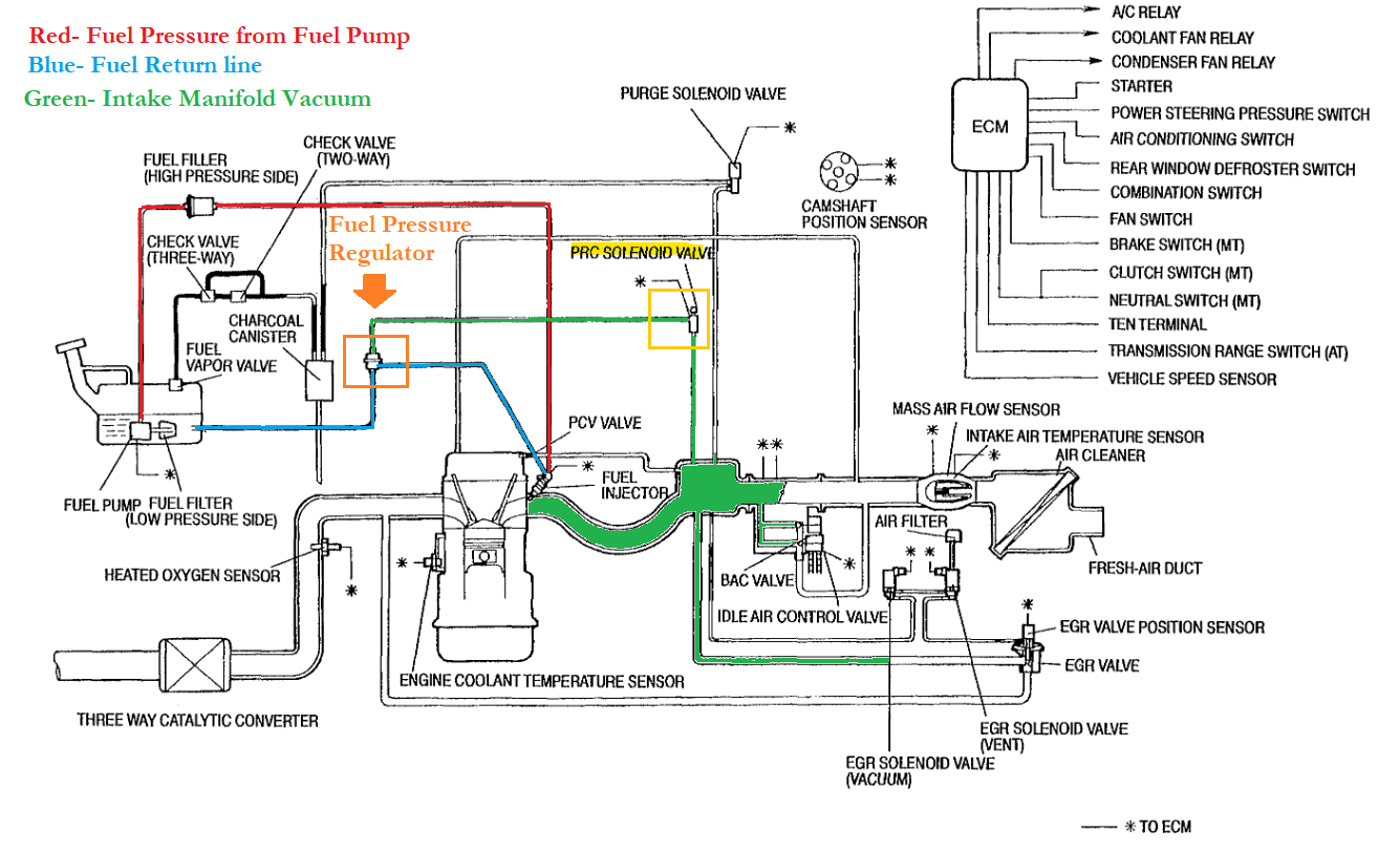 The engine sounds like it is running on 3 cylinders during acceleration. Plugs have a nice color to them. Fuel pressure is good. OBD-1 Shows 2 long flashes pause then 5 short flashes which I think means code 25? I think it is PRC solenoid valve. Whatever that does or where it's at? Then 1 long flash, pause and 4 short flashes which I think means code 14? I think 14 is Barometric absolute pressure sensor?? Then 1 long flash, pause and 9 short flashes which I think means code 19? I don't have a clue what that is.