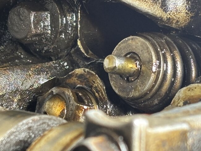 No it stayed on my lifter. The valve stem and spring slipped out from under the roller follower. I’ve been fighting with it every evening this week but I can’t seem to keep the valve stem from slipping out from under the roller follower. Probably because the edge of the valve stem got sheered a little when it messed up. I took a picture. Do you have any suggestions? I’m REALLY not wanting to pull the head! I’m constantly working and can only put my hands on it maybe 30 minutes after work! If you look real close at the picture you can see where it’s a little flat on one side. And does it look like my keeper is broke? I see it has a bigger gap than my other ones. Maybe that’s why? Any suggestions would be grateful! You’ve been a lot of help!