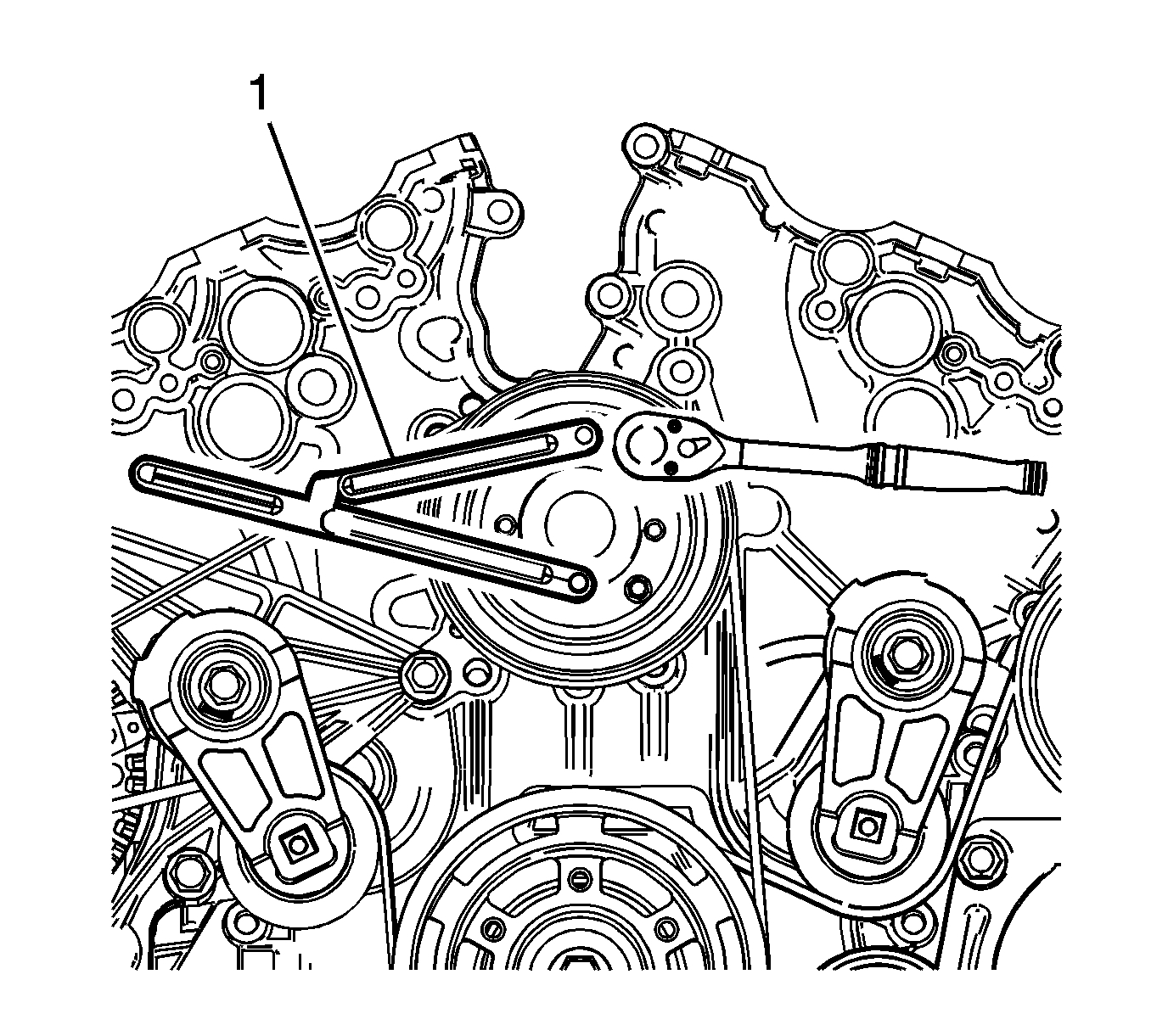 6. Use the EN 46104 - water pump pulley holding tool (1) in order to retain the water pump pulley.