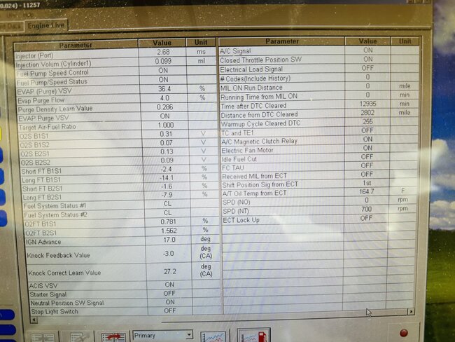 By any chance, do you have a live data scanner? If you do, could you let me know what the short-term fuel trims are when the engine is idling and at operating temperature?