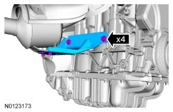 30. Install the lower catalytic converter bracket and the 4 bolts and tighten in sequence shown.