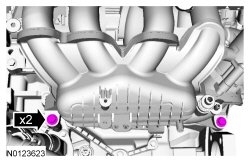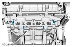 24. Connect the fuel tube spring lock couplings to the fuel rail. For additional information, refer to Section 310-00 See: Fuel Delivery and Air Induction > Components > Fuel System.