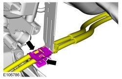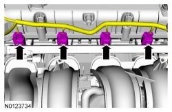 18. Disconnect the fuel tube spring lock couplings from the fuel rail. For additional information, refer to Section 310-00 See: Fuel Delivery and Air Induction > Components > Fuel System.