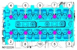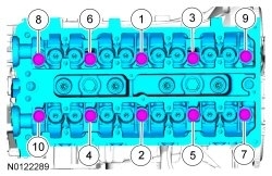 Remove the 10 cylinder head bolts in the sequence shown.