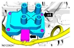 12. Install the ignition coil, 4 screws and connect the ignition coil electrical connector.
