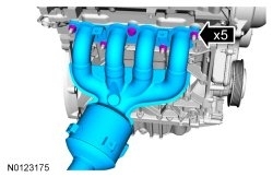 28. NOTICE: Failure to tighten the catalytic converter manifold fasteners in 20 Nm increments until reaching final torque of 55 Nm will cause the converter to develop an exhaust leak.