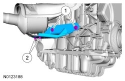 1. Tighten the catalytic converter bracket-to-engine block bolts to 50 Nm (37 lb-ft).