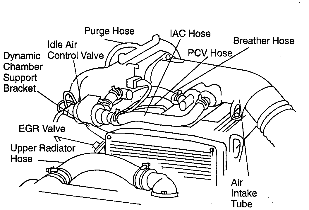 11. Install the vacuum hose from the intake manifold to the charcoal canister.