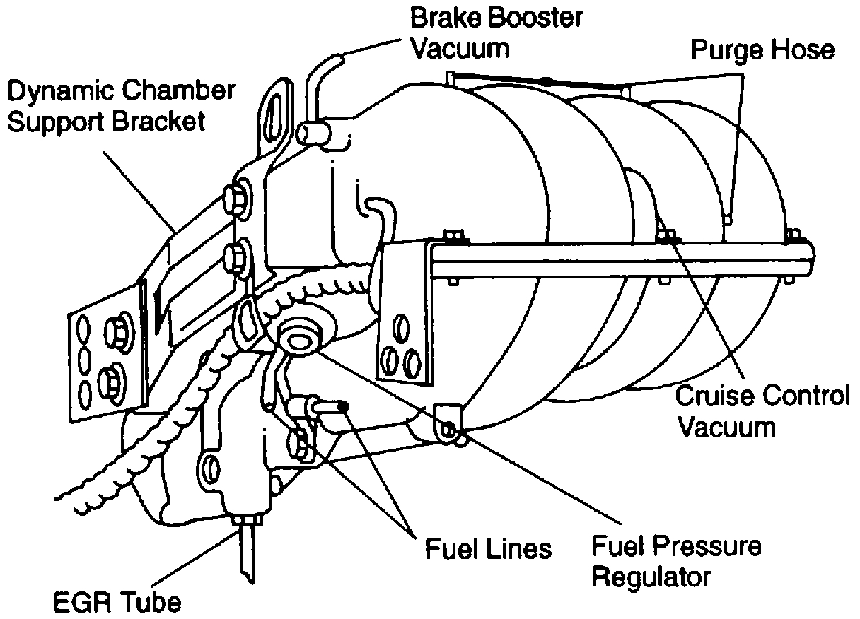 6. Remove the fuel line from the pressure regulator and the return line located at the rear of the dynamic chamber.