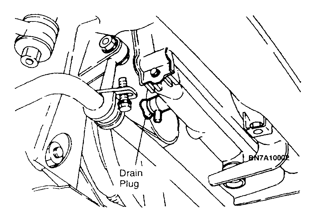 10. Remove the radiator drain plug and drain the engine coolant into a suitable container.