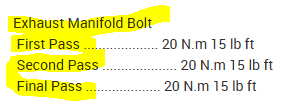 If you look below, I have attached the torque sequence and specifications for the cylinder head. In addition, I included the exhaust manifold as well. Note that when torquing these, it is done in steps, and the final step on the head bolts is based on how many additional degrees the bolt will need to be turned.