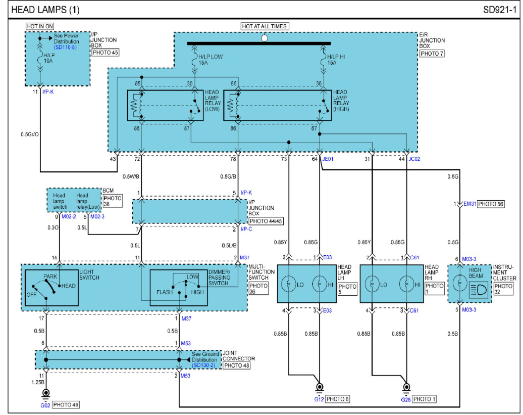 The vehicle headlights are not functioning at all, could I get the circuit diagram for the light?