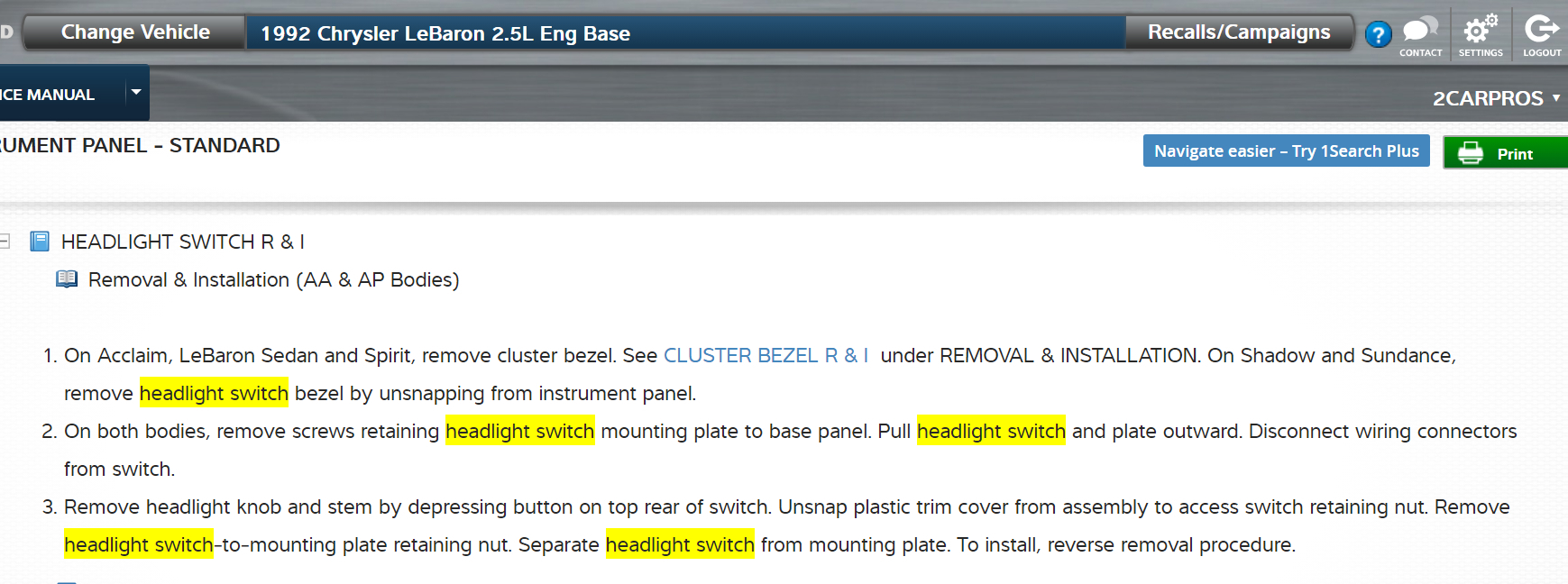 In the diagrams down below I have included factory step by step instructions for removal and installation of the headlight switch. Please get back to us and let us know howq it turns out.
