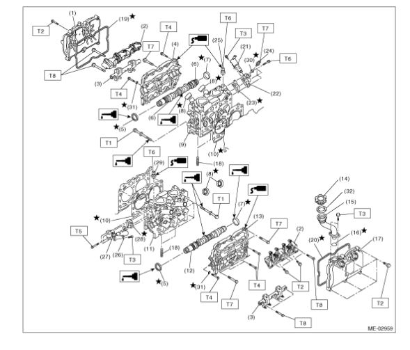 CAUTION: If the bolt makes stick-slip sound during tightening, repeat the procedure from step (1). In this case, the cylinder head gasket can be reused.
