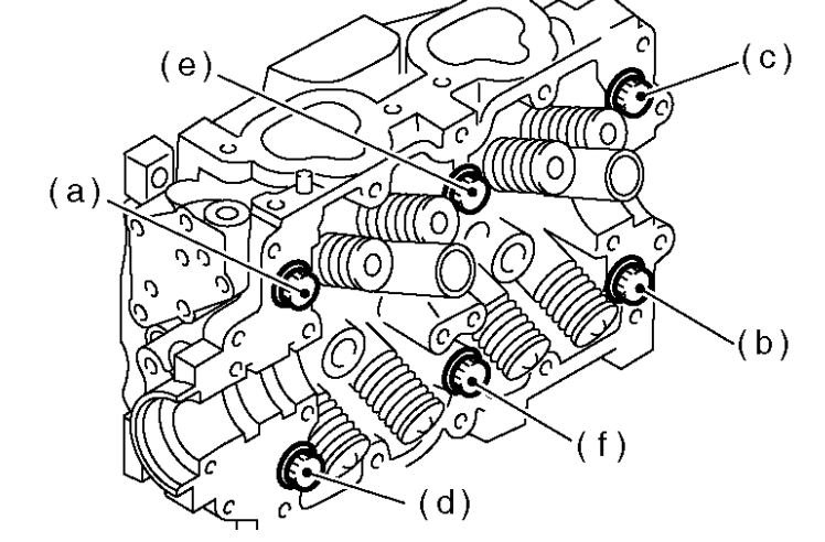 NOTE: Leave bolts (a) and (c) engaged by three or four threads to prevent the cylinder head from falling.