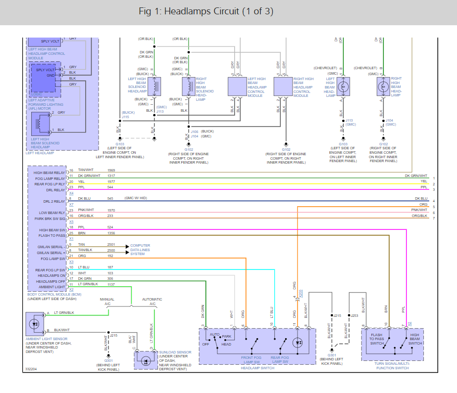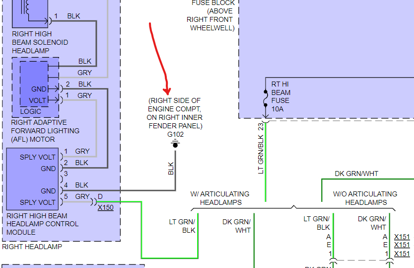 When I noticed my right front headlight was not working, I got to the back of my headlight assembly removed plug going into assembly and reinstalled it. Now the headlight works, but now when I put my right turn signal the headlight flashing with the turn signal, when I put the high beams on the high beam doesn’t work on right side and low beam doesn’t work either. All the bulbs are correct. Also, when the turn signal is on the front turn signal gets very dim when the headlight is flashing. Also, I’m wondering if my headlight assembly is causing this problem, because when I looked first when I had a problem the headlight was not working, or it was very dim and parking lamp was very dim. when I removed the plug from assembly everything seemed to be fine, but then when I put the right turn signal the headlight was also flashing with the turn signal on right side.