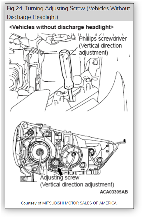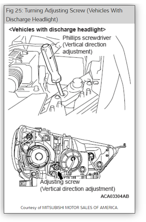 There is an adjustment screw at the top through he frame bulkhead to the headlight housing that adjust the height of the beam. Here are instructions so you can do the job. Check out the diagrams (below). Please let us know if you need anything else to get the problem fixed.