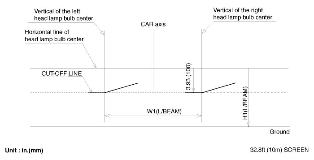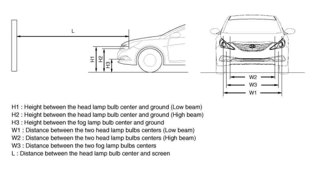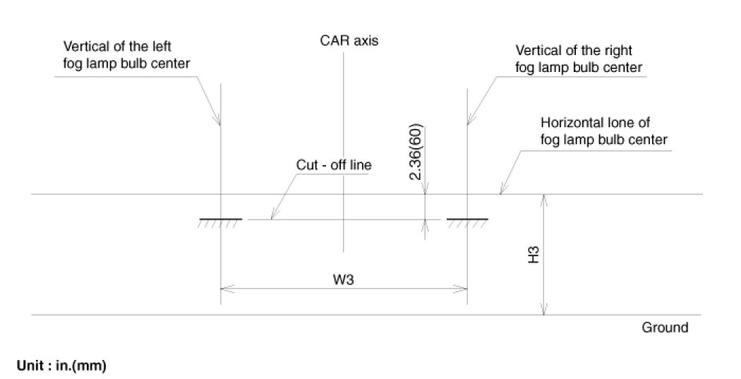 The front fog lamps should be aimed as the same manner of the head lamps aiming.