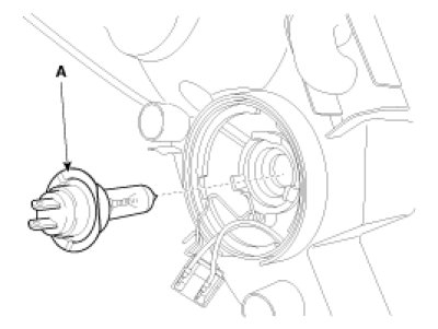 5. Remove the head lamp (High) bulb (A).