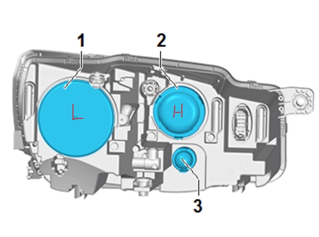 How they are changed depends on which lighting option you have. They could have LED or halogen bulbs. The halogens are changed by removing the highlighted covers. The large covers are the low beam; the smaller ones are the high beam. With the covers off the bulbs or sockets are replaced by rotating them counterclockwise. Then remove the electrical connection. Reverse the process to install the new bulbs, BUT be very careful, you cannot touch the glass on the bulbs, if you do, they will need to be cleaned with alcohol to be sure there is no residue on them.