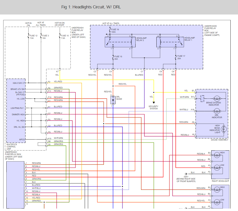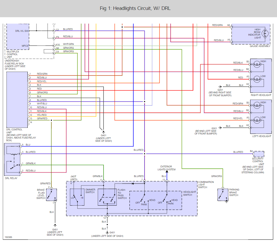 Headlights are not lighting up, except for passenger side high beam. DRL indicator light is on in the dashboard. Have tested fuses and relays for resistance and they are giving a resistance.