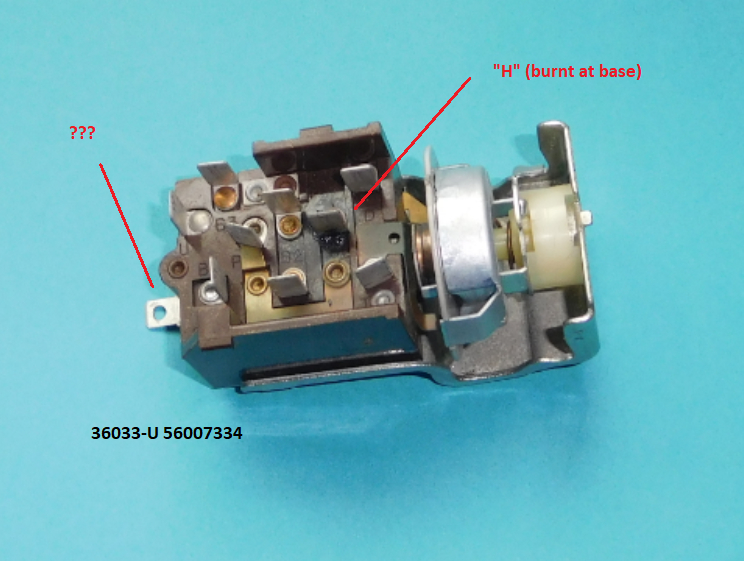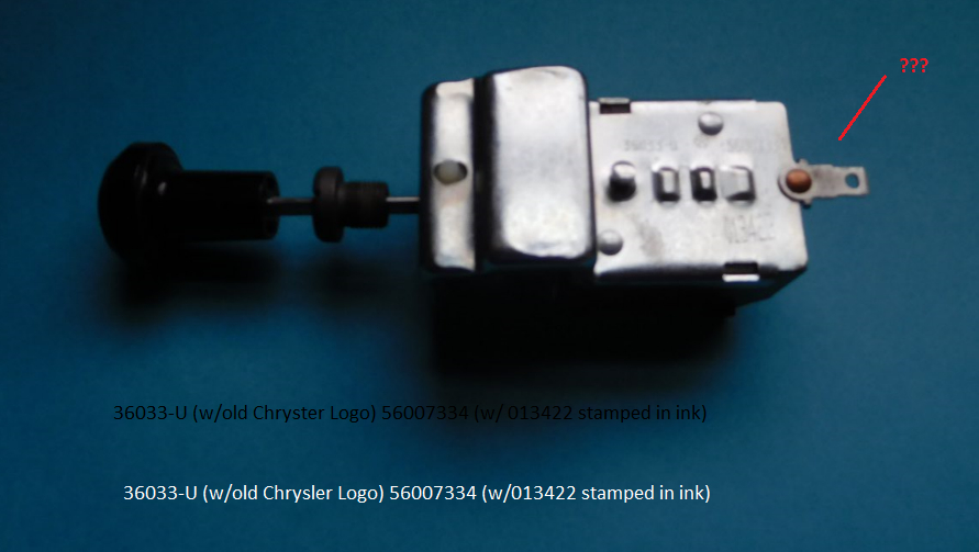 As it turns out, the cable to the terminal is so short, the only access I have to it is upside down, with my shoulders on the drivers seat (head jammed into the brake pedal). At this point, I am not certain my back can handle another try. Since there is a Chrysler mark on the old switch, I wonder it has been repaired previously (shortening the cable).