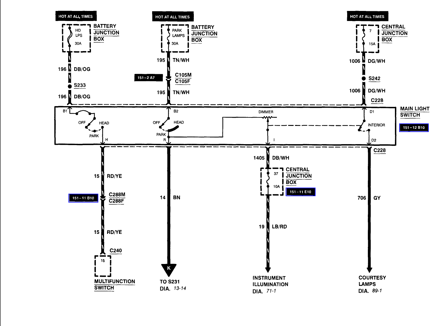 I need a wire diagram telling me which wires go where on the headlight switch pull switch. I was not the person who disconnected the wires. now I need to connect them. the car is the Gt model.