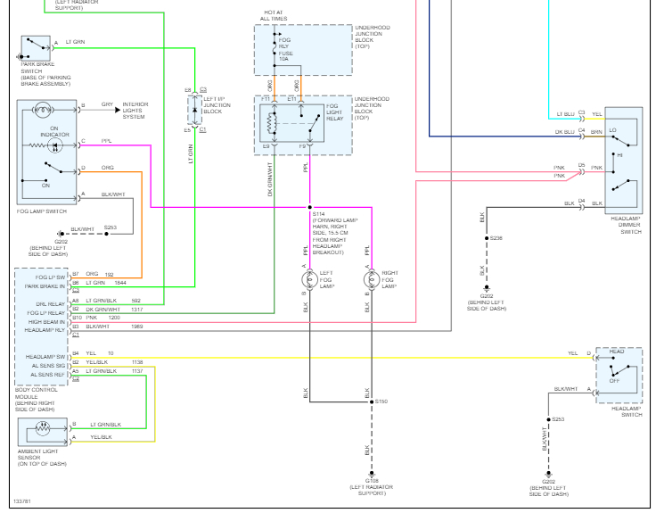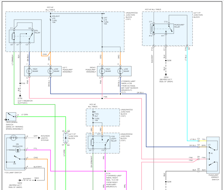As far as aftermarket items are concerned, I won't have schematics. However, I do have the headlamp wiring schematic showing wiring colors and purpose.