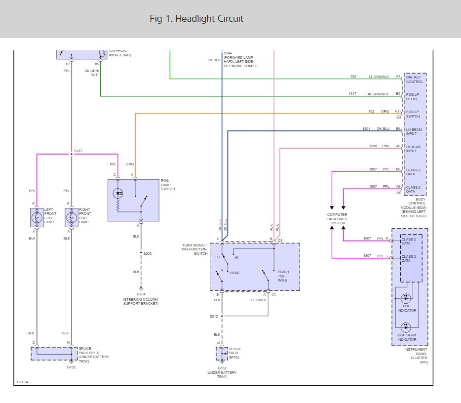 This is best done with two people, one to operate the lights and one to watch which lights come on outside the vehicle.