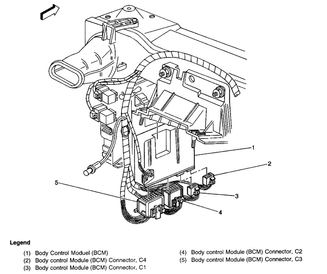 8. Remove the two wire harness straps from the steering column wire harness (1).