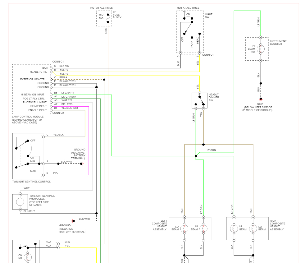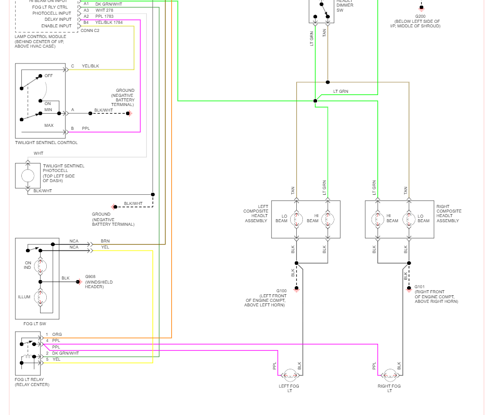 When I pull out the knob the twilight sentinel works and the yellow lights on the front of the car turn on, but not the headlights. Funny thing is that if I pull the turn signal/wipers rod towards me, I’ll get illumination from possibly the high beams until I let go. I still have no idea where the headlight fuse or relay is after checking the manual, and don’t know how to replace a headlight switch or where to get one.