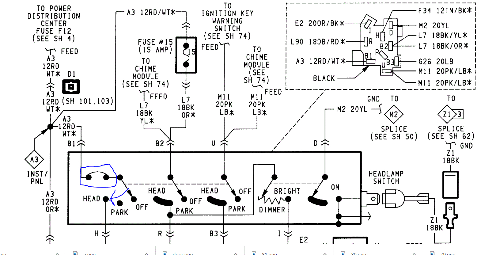 I attached a pic from a standard Cherokee and circled the internal circuit breaker for the headlamps. I have a feeling that it kicks off (turning headlamps only off) and then cools off and works again.