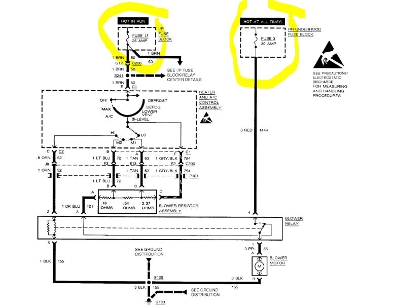 Not getting any air flow out of the vents. None out of defrost floor or center dash vents. I have replaced the blower motor which was bad along with the blower motor resistor, the blower motor relay and the fan speed switch in the controls. This car has all manual settings.