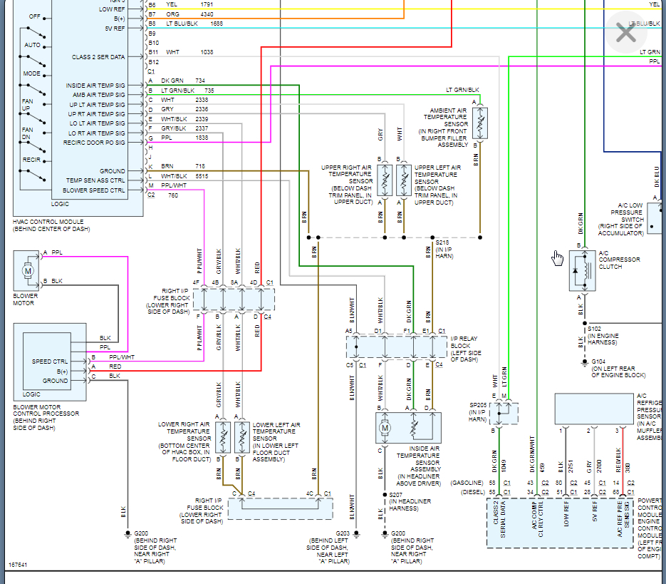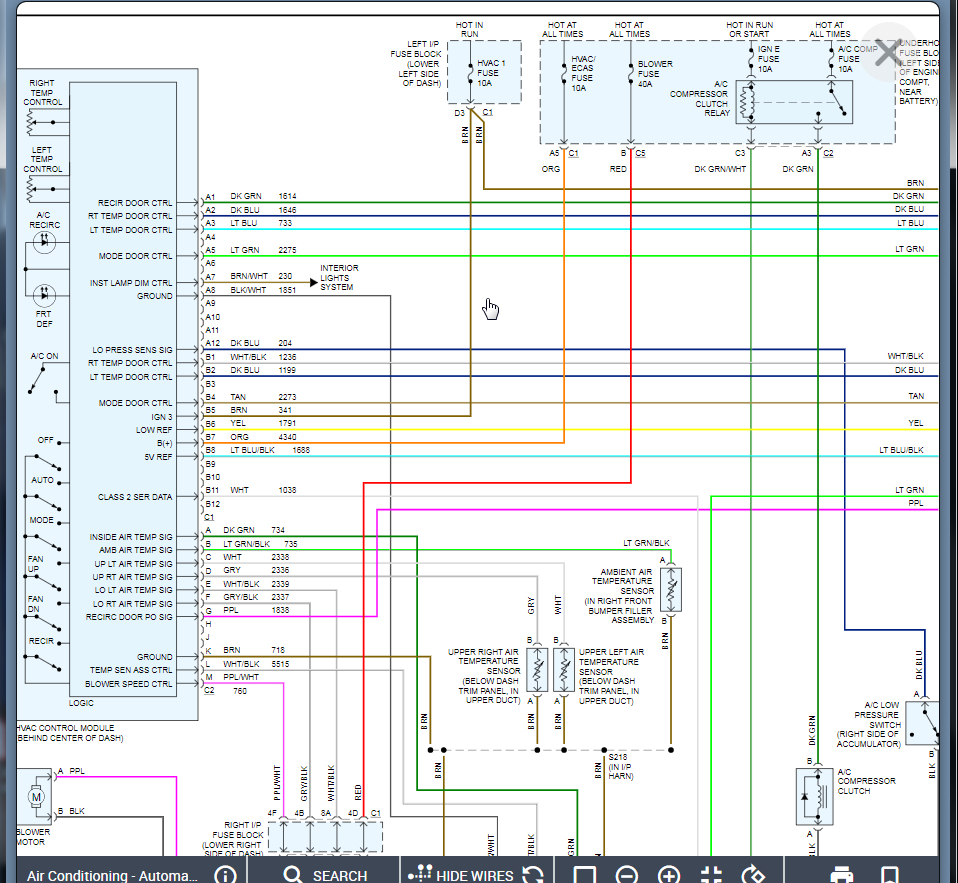 Either there is a fuse issue (HVAC 1 Fuse) in the left IP fuse block or one of the fuses shown in the wiring diagram below in the under hood fuse block.