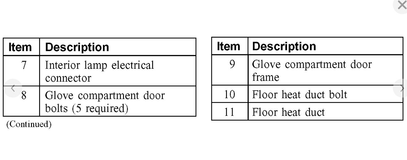 Item 6: Glove Compartment Bin Removal Note