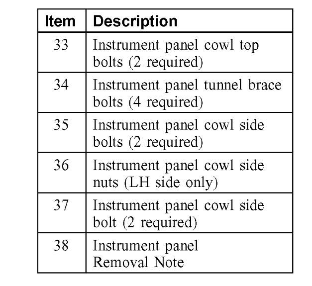 Item 38: Instrument Panel Removal Note