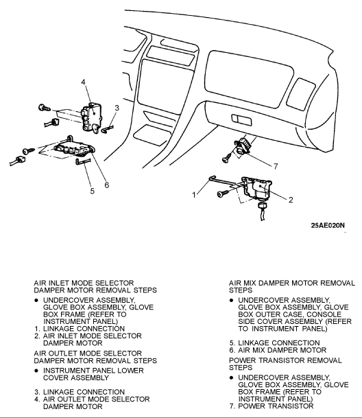 The lower instrument cover has two screws and clips that hold it in place. Once you remove it the actuator and linkage is right there on the HVAC case.