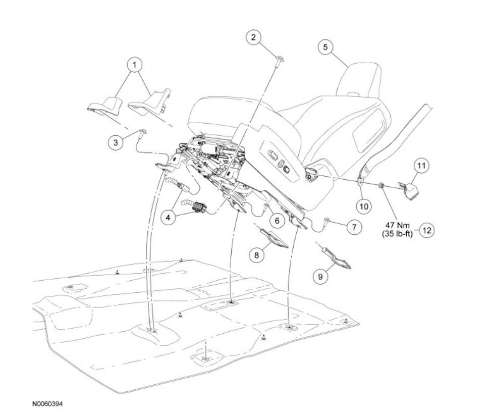 5. Install the front passenger seat. For additional information, refer to Seat - Front See: Seats > Removal and Replacement > Seat - Front.