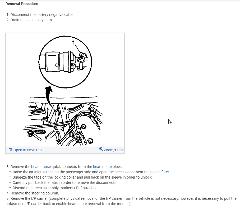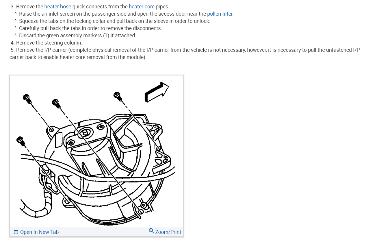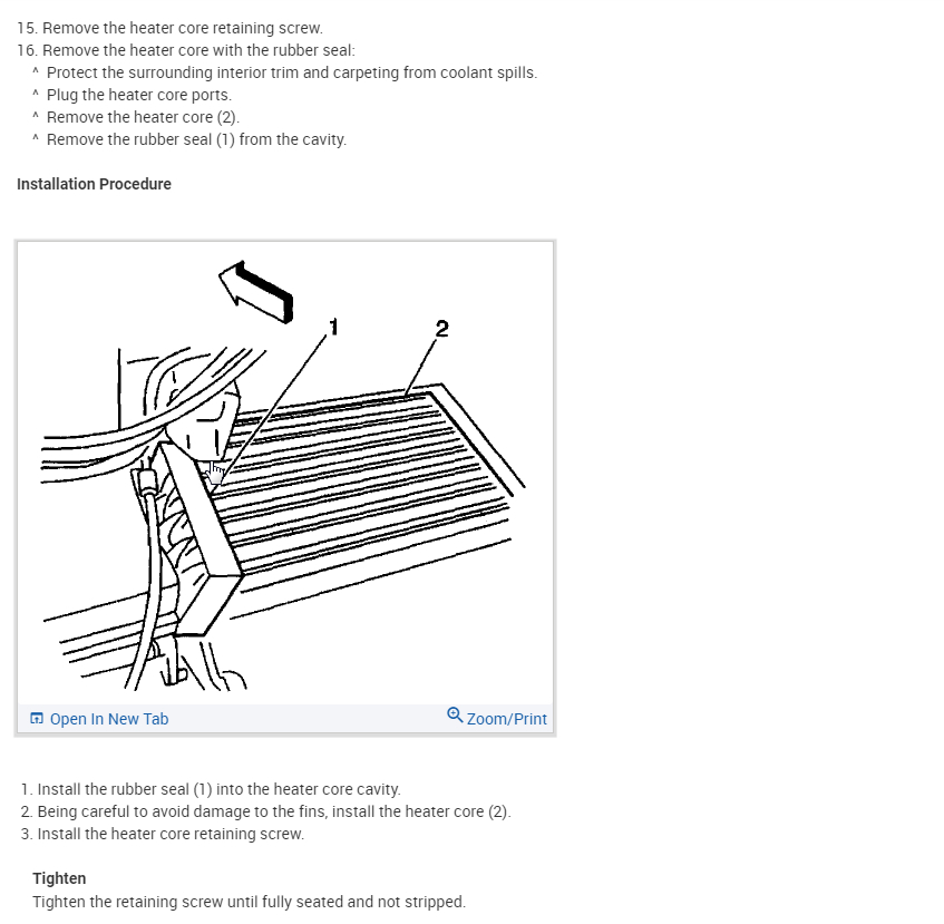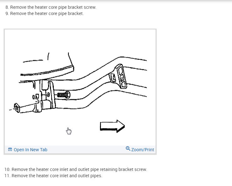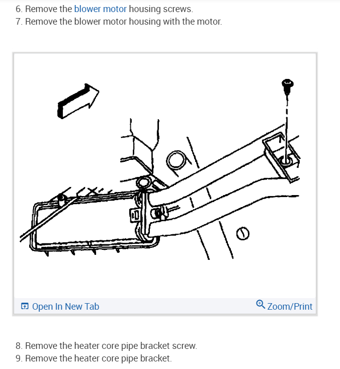 Start by draining the coolant and disconnecting the battery before you start removing the heater core here are the directions on how to remove the heater in the diagrams below. Check out the diagrams (below). Please let us know if you need anything else to get the problem fixed.