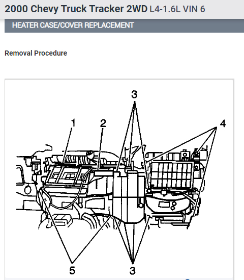 I've attached picture steps below on how to replace the heater core on your Tracker. Hope this helps and thanks for using 2CarPros.