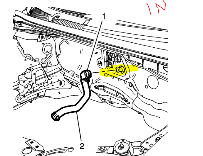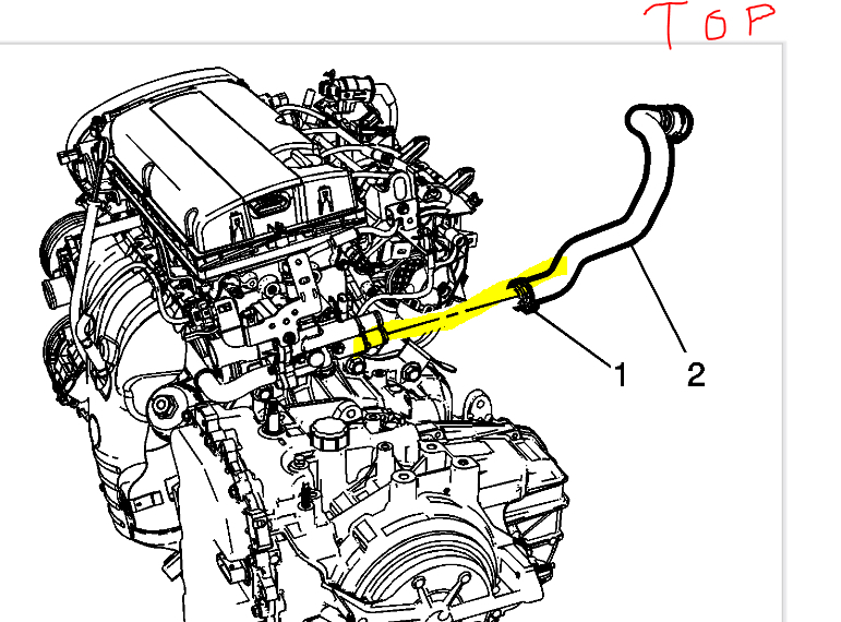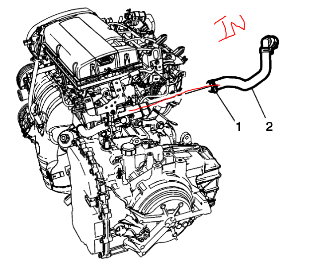 I replaced thermostat housing and can’t remember which hose on heater core goes where on housing.