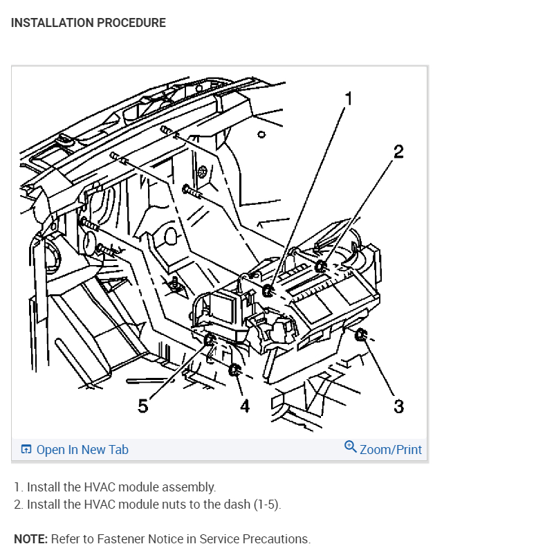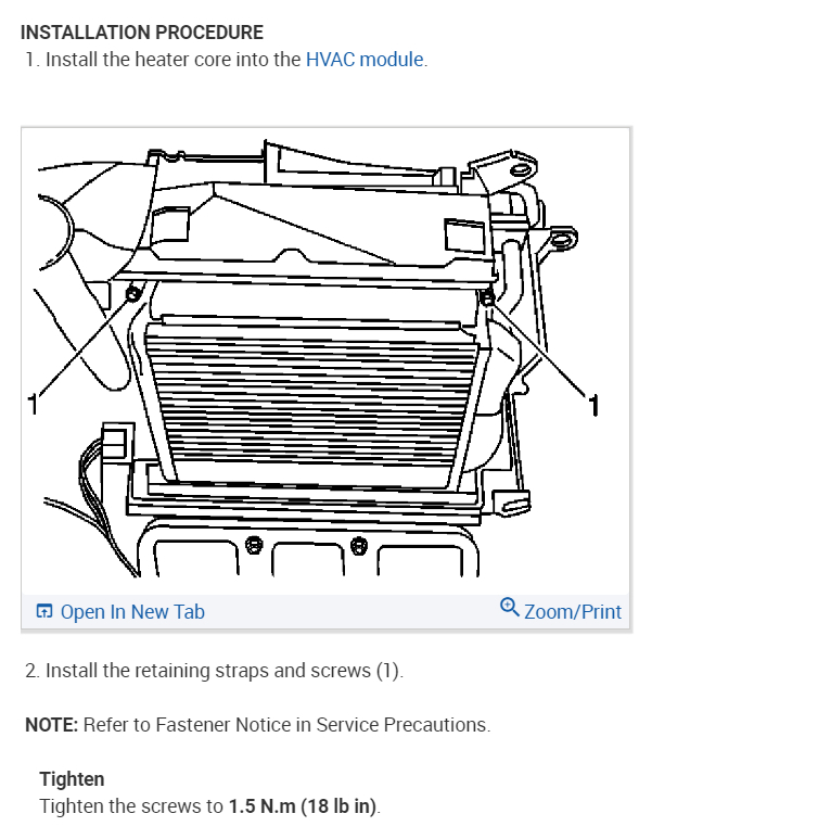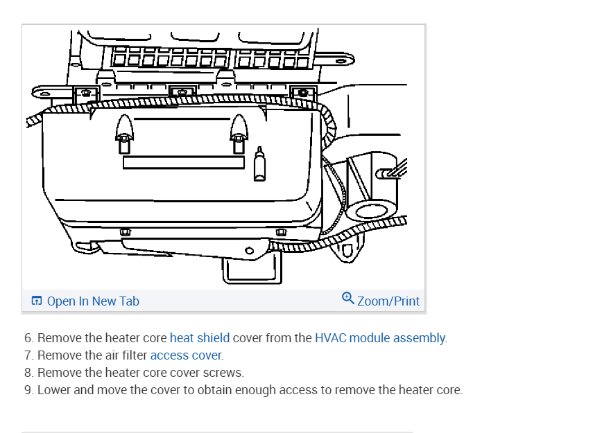 Sure, here are the diagrams to help you reinstall the heater core. Check out the images (below). Let us know what happens and please upload pictures or videos of the problem so we can see what's going on.