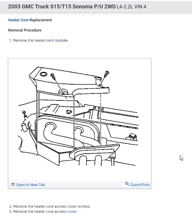 Need step by step Instructions on how to replace a heater core in 2003 GMC Sonoma