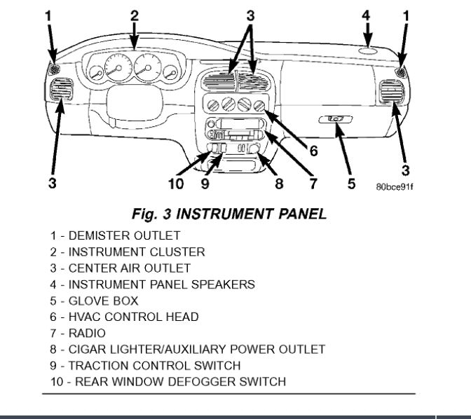 The Instrument Panel (Fig. 3) can be removed as an assembly after a few part are removed to allow access to the retaining bolts. There is one self-aligning bulkhead connector on the left underside of the instrument panel replacing most of the main harness connectors. Once removed, the instrument panel can be serviced for replacement. Most of the parts of the instrument panel can be replaced individually without removing the complete instrument panel assembly.
