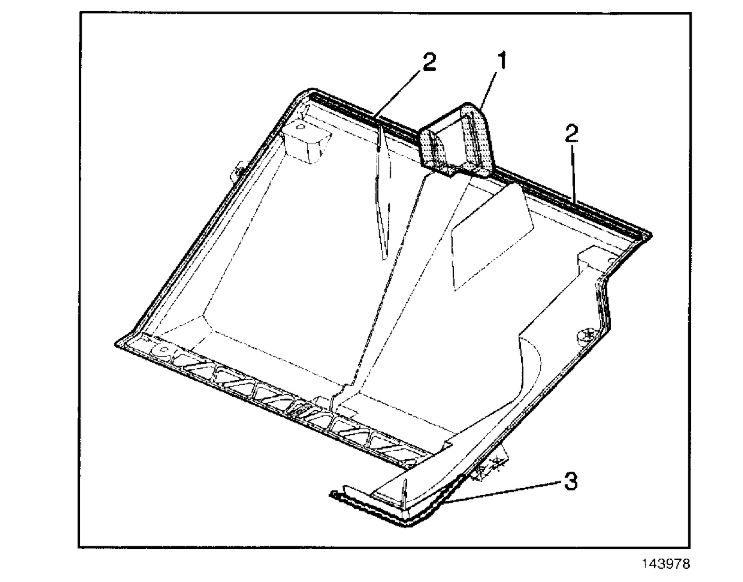 14. Remove the caulk (3) from the heater core cover.