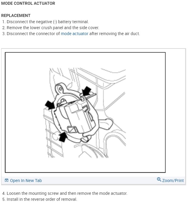 Okay, that sounds like the mode actuator has failed. On that vehicle it is very easy to replace. First look above the driver's side footwell and you will see a cover that hides all the parts behind the dash and a trim panel on the right side that blocks off the HVAC ducting. Remove those two trim panels by removing the screws and setting the panels aside. Now look up above the gas pedal and toward the front and you will see the mode actuator attached over the mode cam. Remove the three screws that hold it in place. Unplug the electrical connector. Now be sure it is in the defrost position (blowing out the top vents) and install the replacement unit so the pins on the arms are set in the slots on the mode cam. Put the screws in, plug the connector in and test it for proper operation. Replace the trim covers and enjoy the heat.